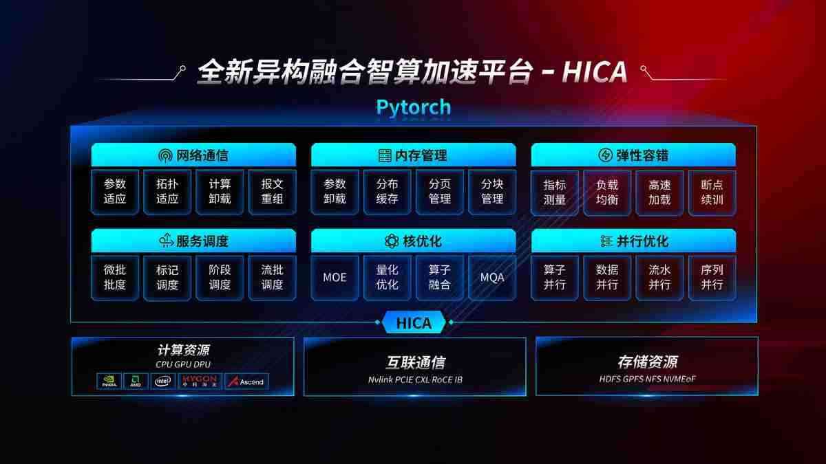 通过自研的服务层、、、、中间适配层、、以及调度编排算法,,采用数据并行、、模型并行等多种并行方式,,,,把并行计算任务进行有效的分解,,,,使其分别由相应的软件栈和算力资源来承接。。。。当GPU资源变化,,,,HICA可以实时动态调度计算子任务并调整模型拓扑和架构,,,,以充分聚合各种算力资源。。。。