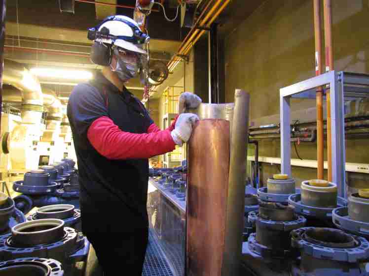 彩霸王将废弃物转化成有效的工业或民生原物料,,,图为废铜液淬炼后再制成纯度极高的铜管