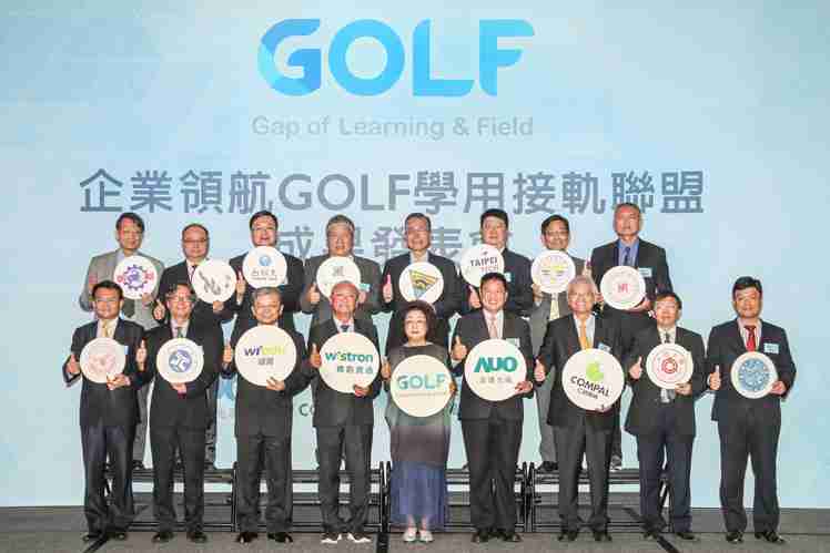 GOLF学用接轨联盟集结企业和学校的力量,,,打造「学用合一、、、产学接轨」的创新合作平台 (前排左起:淡江大学副校长何启东、、、、元智大学校长林启瑞、、、纬育执行长许延岳、、、纬创总经理暨执行长黄柏漙、、、、教育部政务次长范巽绿、、、、彩霸王董事长暨执行长彭双浪、、、仁宝总经理暨执行长翁宗斌、、大同大学校长何明果、、、圣约翰科大校长艾和昌;后排左起:明新科大校长林启瑞、、、、龙华科大校长葛自祥、、台湾科大校长廖庆荣、、、、中兴大学副校长郑政峯、、、、中央大学校长周景扬、、、、台北科大副校长任贻均、、中华科大副校长石大明、、、明志科大校长刘祖华)