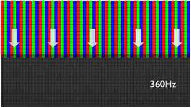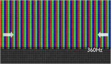 传统液晶驱动是从左到右单向进行,,,,在画面更新速度愈来越愈快的情况下,,,,位于驱动线路末端的右下角区域,,画素的闸极来不及在短时间内获得足够电压,,,无法显示出正确的颜色资讯。。。。